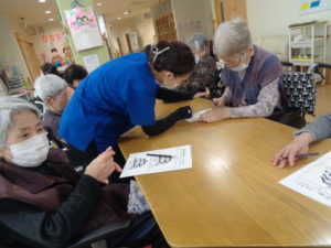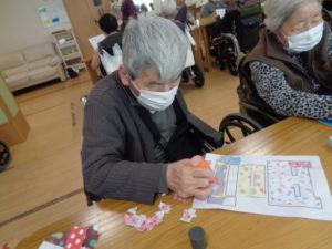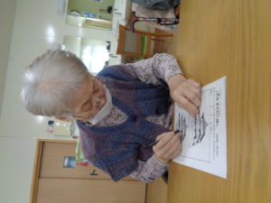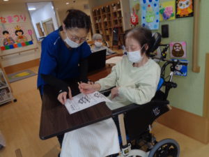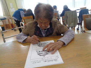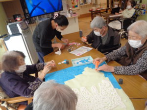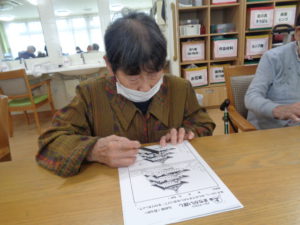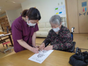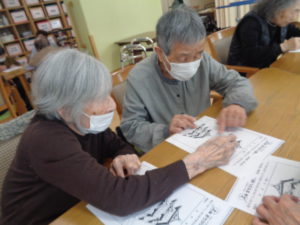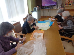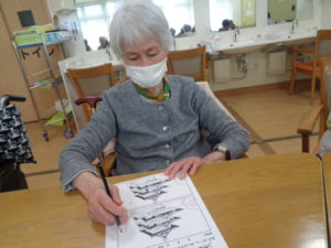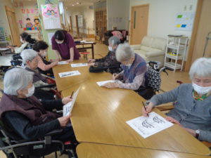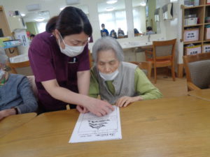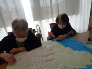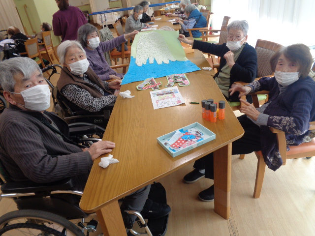 本日は、4月の壁画づくりと脳トレを