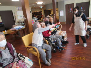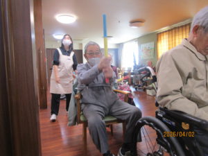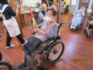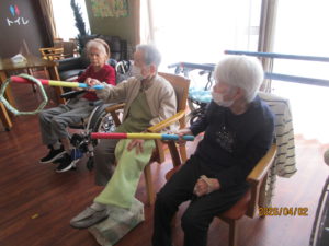 ほぐす体操をして真剣に取り組んで頂きました。わっかリレーでは、