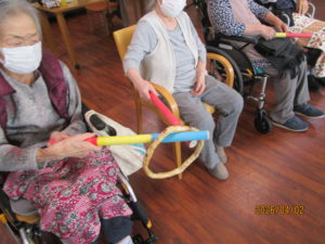 本日は、棒体操とわっかリレーを行いました。