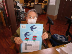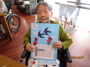 カレンダーに2羽のツバメとカーネーションを作り貼って頂きました💐