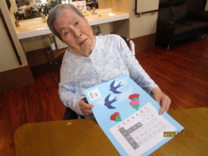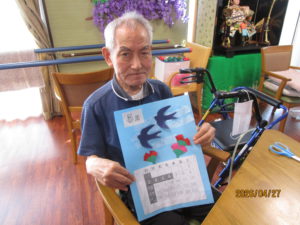 ハサミを使いツバメを切っていだきました。細かい為、皆さん少し苦労されていました。