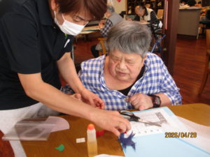 午後のレクでは昨日に引き続き5月のカレンダーを作りました。