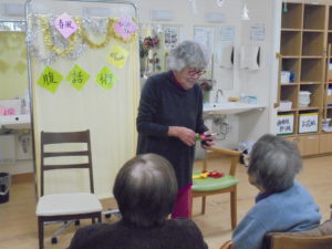 2019.12.26 ケアセンター各務原、心音日記 【各務原】腹話術【デイサービス】 今日は腹話術のボランティアさんがきてくださいました。せいちゃんとさっちゃんです★ひもを使った手品もみせてくださいました(^^)/笑いあり涙ありの時間でした★また来年きてくださるそうだ楽しみにしてます(^^)/ありがとうございました。★