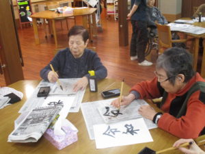 2020.01.4 ケアセンター笠松、心音日記 【笠松】書初め2日目【デイサービス】 書初め2日目です! みなさんやる前はきれいに書けないよと言われておりましたが、 すばらしい書初めが完成です(^^)/ 今年の書初めは令和が人気でした!!