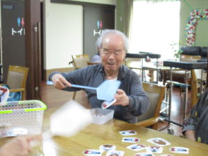 2020.07.13 ケアセンター笠松、心音日記 【笠松】ハエたたきゲーム【デイサービス】 みなさまこんにちは。 本日は新しいゲームに挑戦です。 文字通り、たくさんのハエたちを退治します! 皆様で白熱した戦いになりました!