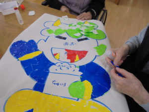今日のレクリエーションは、来月の壁画作りの貼り絵です。