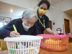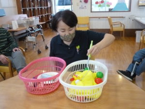 2021.01.28 ケアセンター土岐、心音日記 【土岐】レクリエーション【デイサービス】 今週のゲームは 「カゴからカゴへ」ゲームです。 15種類の物を隣のカゴに早く移しかえた方の勝利になります。皆さん、ボールに苦戦されていました。