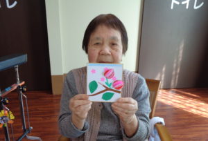 2021.04.5 ケアセンター笠松、心音日記 【笠松】🍒さくらんぼの色紙づくり🍒【デイサービス】 みなさまこんにちは。 本日は工作レクです! 立体的なさくらんぼを作りました🍒 かわいらしく出来上がりました! 玄関などにぜひ飾ってください♪ 4月の壁画も飾りました♪