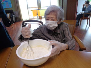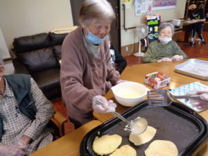 楕円の形になるよう、みなさま慎重に生地を流し入れました。