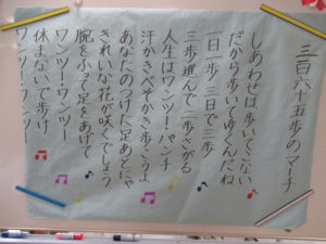 今日のレクリエーションは、いつも帰りの会で歌っている歌に振付を付けた、