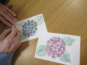 今日のレクリエーションは、あじさいのポストカード作りを行いました🎵