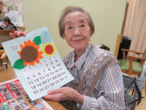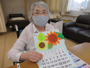 今日のレクリエーションは、ひまわりの花メインのカレンダー作り