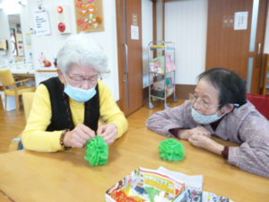 皆さんにお花紙でお花作りをして