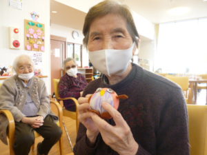 本来ならボールでやりたかったのですが、的に当たって跳ね返ってしまうためお手玉を使って行いました。