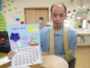 お月様とかわいいうさぎ、桔梗やつくし等の秋らしいカレンダーを昨日と今日で皆様一生懸命作りました!!