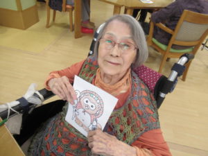 月初めの体重測定を行いながら『信楽たぬき』の塗り絵をしていただきました♪