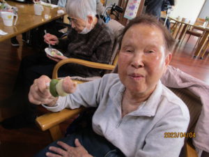 2023.04.4 ケアセンター笠松、心音日記 【笠松】🌸お花見だんご作り🍡【デイサービス】 みなさまこんにちは。 本日もお花見だんごを作りました! 豆腐増量でさらにもちもちに! 串に通して完成です! 本日も素敵に出来上がりました!
