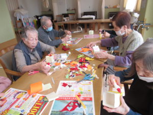 藤の花も作り、5月の季節感溢れるデイルームとなりました!
