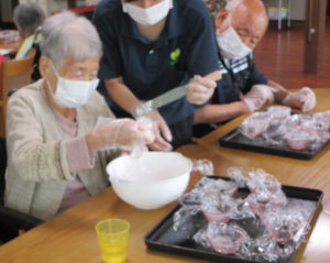 生地とあんこをラップで縛って、冷やすと水まんじゅうの完成です!