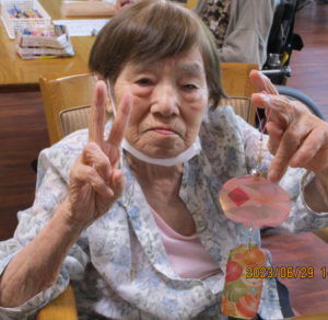 2023.06.29 ケアセンター笠松、心音日記 【笠松】🎐風鈴飾り作り【デイサービス】 みなさまこんにちは。 本日も風鈴飾りを作っていきました! ハサミを使って切っていきます。 風鈴飾りの完成です! それぞれの完成品と一緒に記念撮影です📷 個性あふれる作品になりました! 明日もお楽しみに!