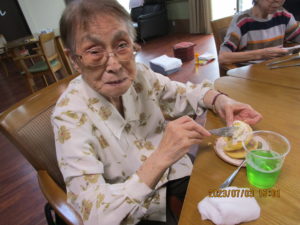 2023.07.3 ケアセンター笠松、心音日記 【笠松】7月最初のレクは・・・?【デイサービス】 みなさま、こんにちは。 本日はおやつ作りを行いました! ミニホットケーキとメロンソーダで喫茶店風に! アイスをのせて、おしゃれな仕上がりです♪ 明日もお楽しみに!