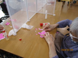 午後は、来月の壁画に使用する桜🌸の【ちぎり絵】を行っていただきました(^_-)-☆