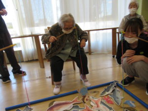 2024.05.9 ケアセンター各務原、心音日記 【各務原】本日も大漁という事で...【デイサービス】 心音特製釣り堀には、各種魚介類がひしめき合っております。 本日のレクリエーションは、魚釣りゲームです。 1分間に何匹釣れるかを競いました。 本日のMVPの利用者様です。 おまけです。 それでは また ご縁がありましたら。