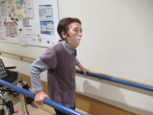 職員の声掛けと共に平行棒で歩行訓練頑張ってますよっ✊