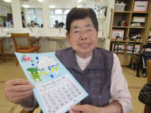 デイルームも梅雨バージョン仕様になり、本日のレクリエーションは、