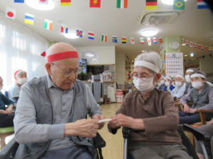 そして、利用者様の個人戦で行う、ティッシュ綱引きです。