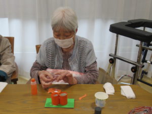 程よくカットしたトイレットペーパーの芯に折り紙を巻き付け、