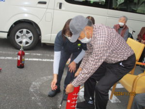消火器の説明を真剣に聞いてみえました。