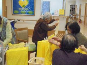 2017.05.11 ケアセンター各務原 【各務原】タオル干し!【デイサービス】 『出来ることは手伝うわ』と言って、女性の利用者さんが手伝って干してくださいます。 みんなで干すので、あっという間に終わります。