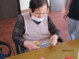 ハサミや指先を使い作られていました!皆様集中して綺麗に完成されていました!