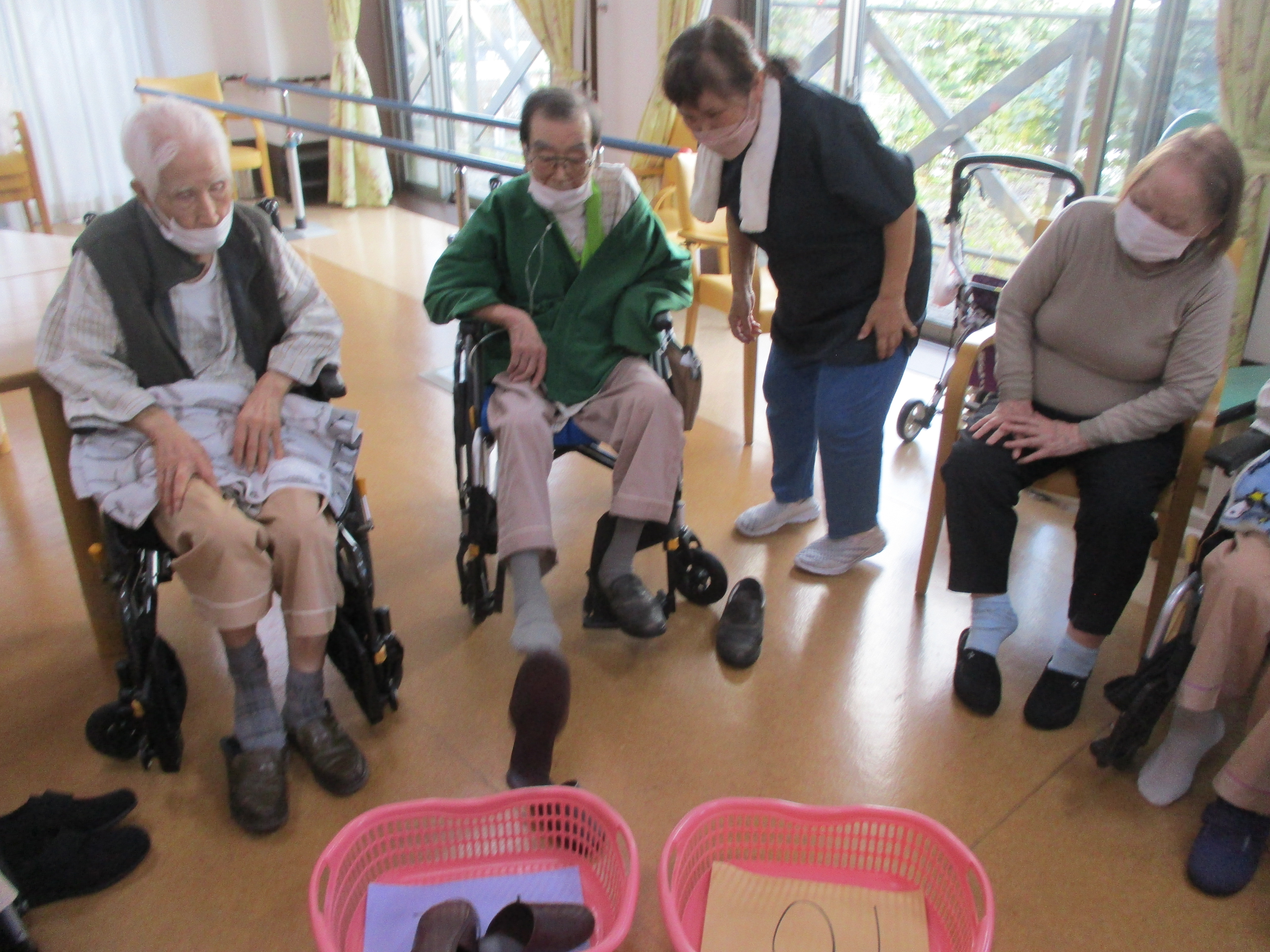 本日のレクリエーションは【スリッパ飛ばし】を行いました!
