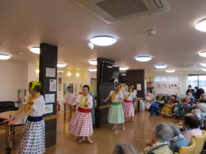 2019.03.11 ケアセンター瑞浪 【瑞浪】フラダンス【デイサービス】 今日はボランティアの方達にフラダンスを披露して頂きました。 皆さんとても素敵でした。 利用者様もリズムに合わせて手を叩いたり、一緒に踊ったりと とても楽しい時間でした。 ありがとうございました。