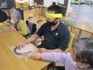 本日は、レクリエーションの時間に、「福笑い」を行いました。
