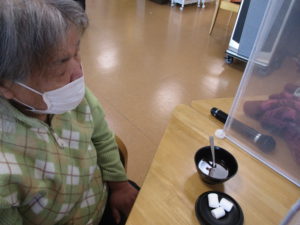 「お持ちの代わりのマシュマロは喉につかえないからいいねえ」と仰られる